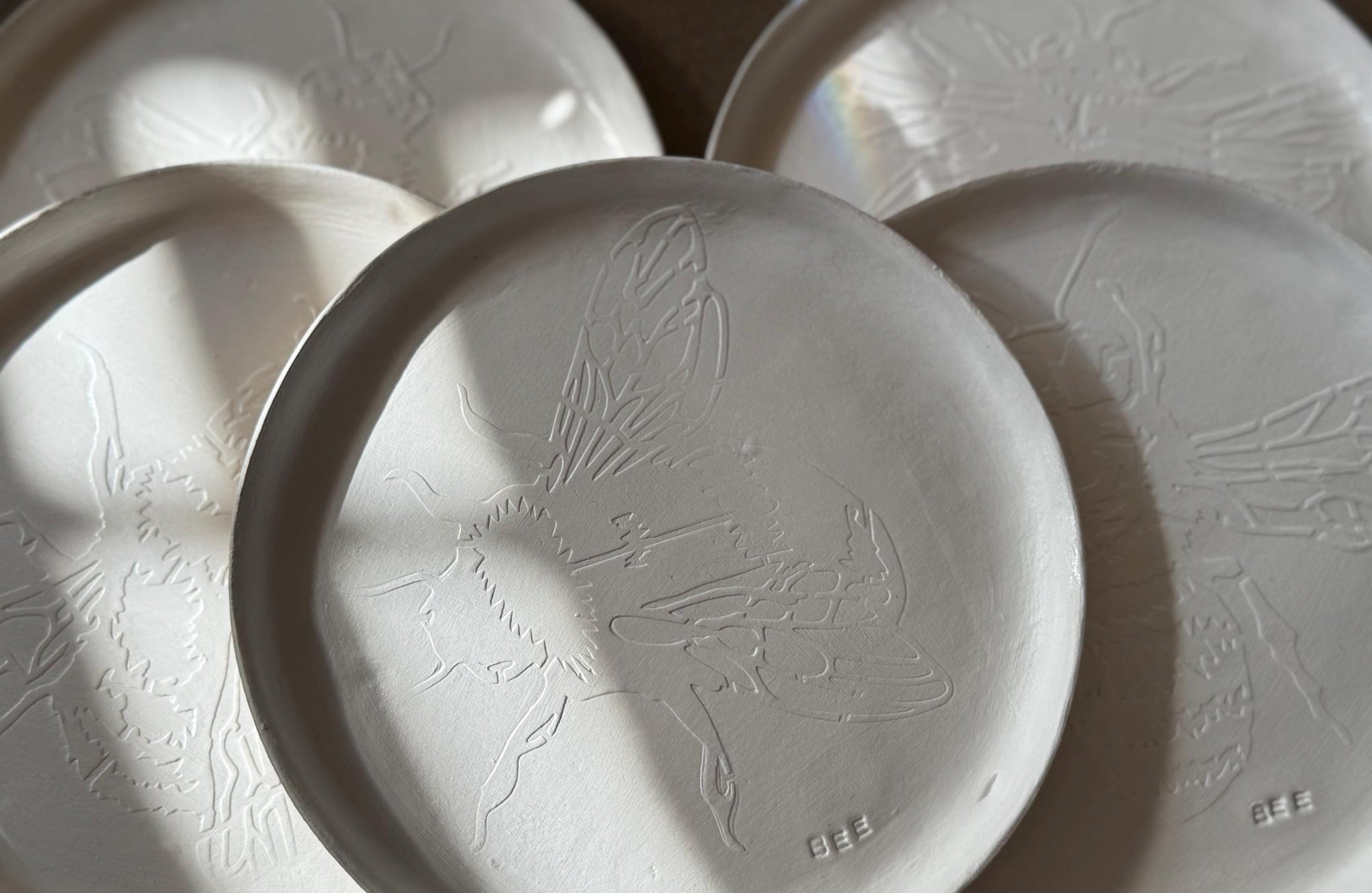 Adorable bee design trinket dish made from hand-shaped air dry clay. Perfect as a jewelry holder, catch-all dish, or wall art. Each piece is hand-painted, sealed, and completely one-of-a-kind.