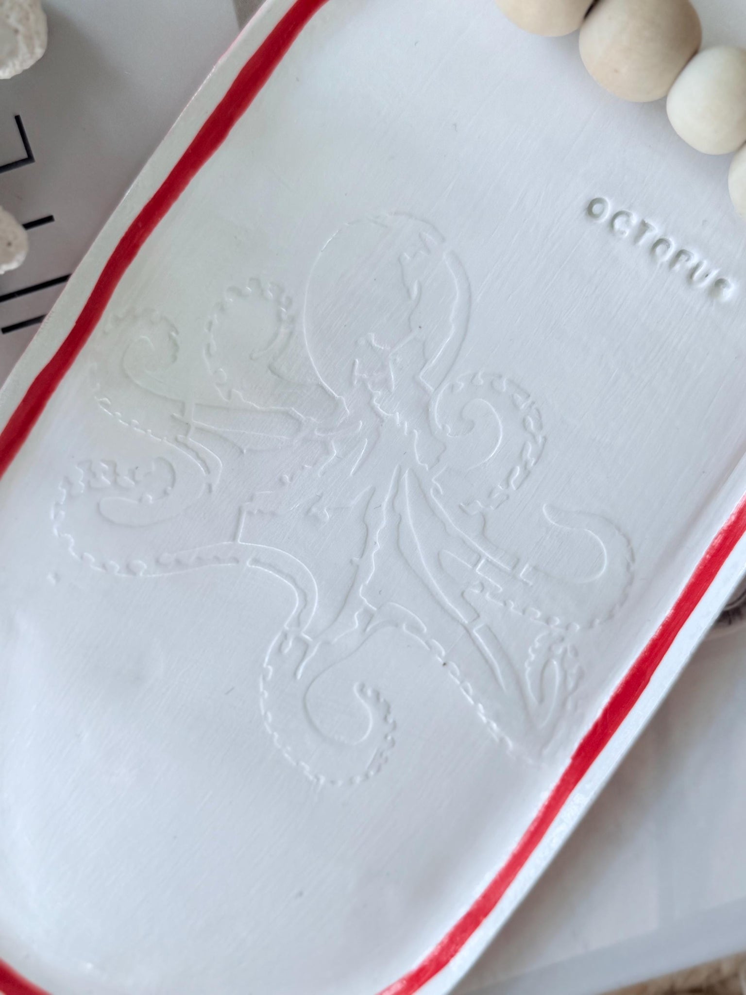 A trinket dish with a difference! New octopus design is carefully handmade from clay and air-dried — no tools or machinery, just traditional handcrafting. Each dish is one-of-a-kind, full of character, and made with love.
